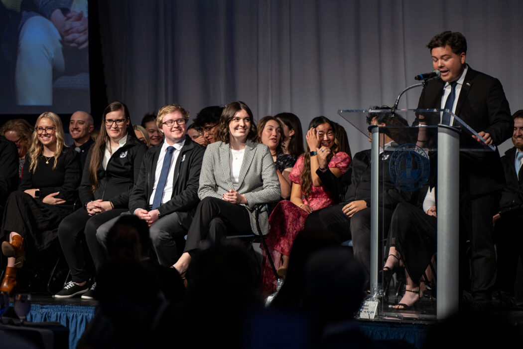 President Mathew Richey calls the incoming USUSA officers one by one to sit on stage at the USUSA Inauguration on April 18 in the TSC Ballroom.