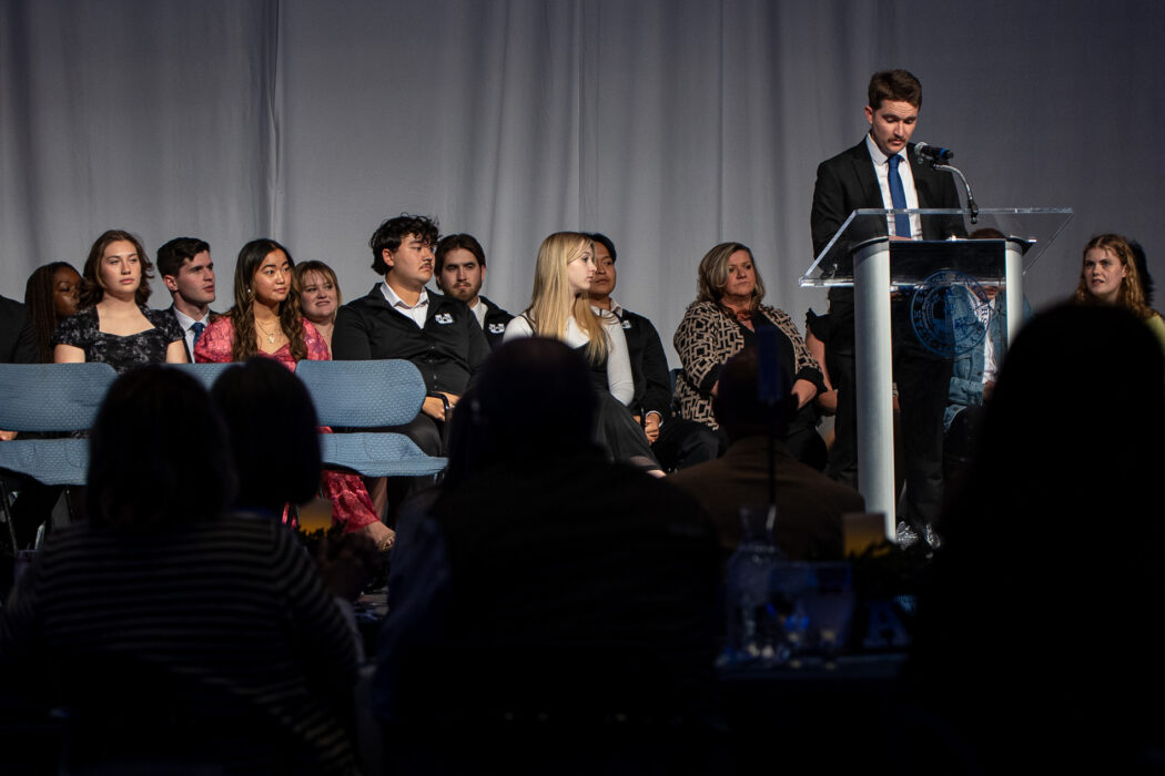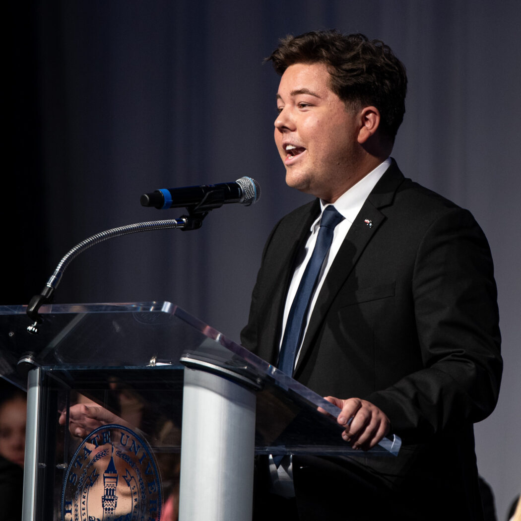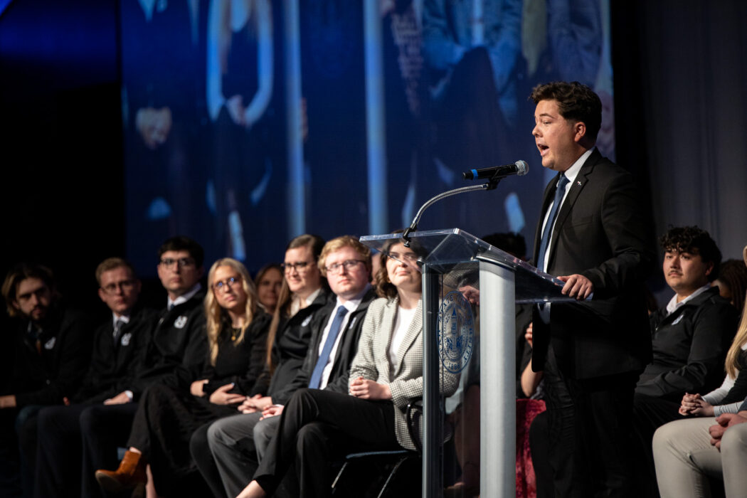 USUSA President Mathew Richey speaks at the beginning of the 2025 Inauguration of the incoming USUSA officers on April 18 in the TSC Ballroom.