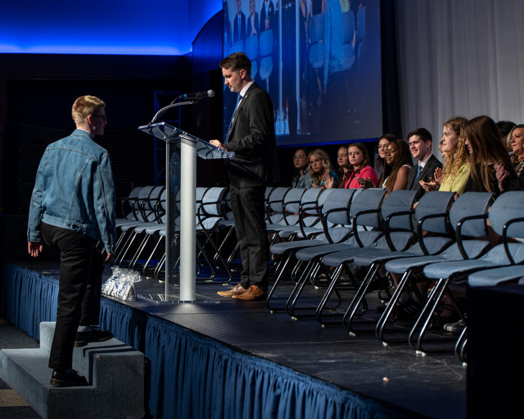 President Mathew Richey calls the incoming USUSA officers to sit on stage at the USUSA Inauguration on April 18 in the TSC Ballroom.