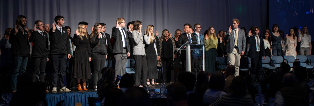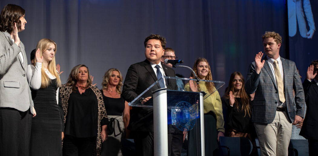 Newly inaugurated USUSA President, Brandon Sorensen swears in the incoming USUSA officers at the 2025 USUSA Inauguration on April 18 in the TSC Ballroom.