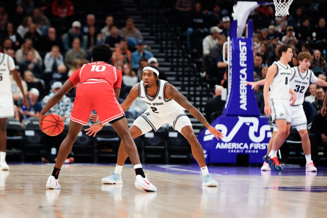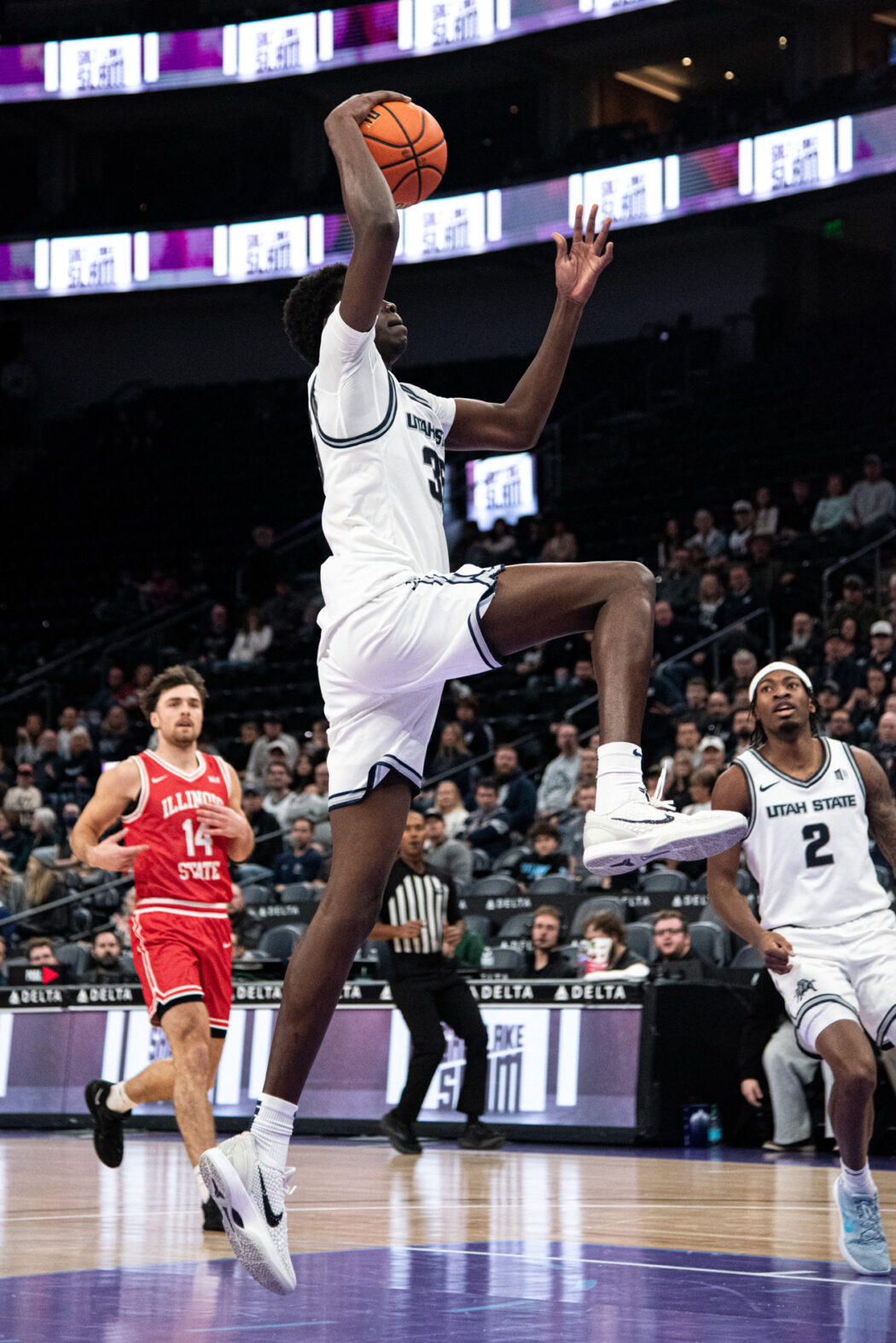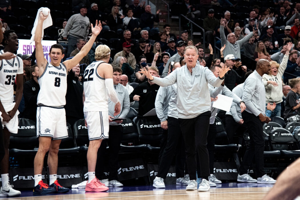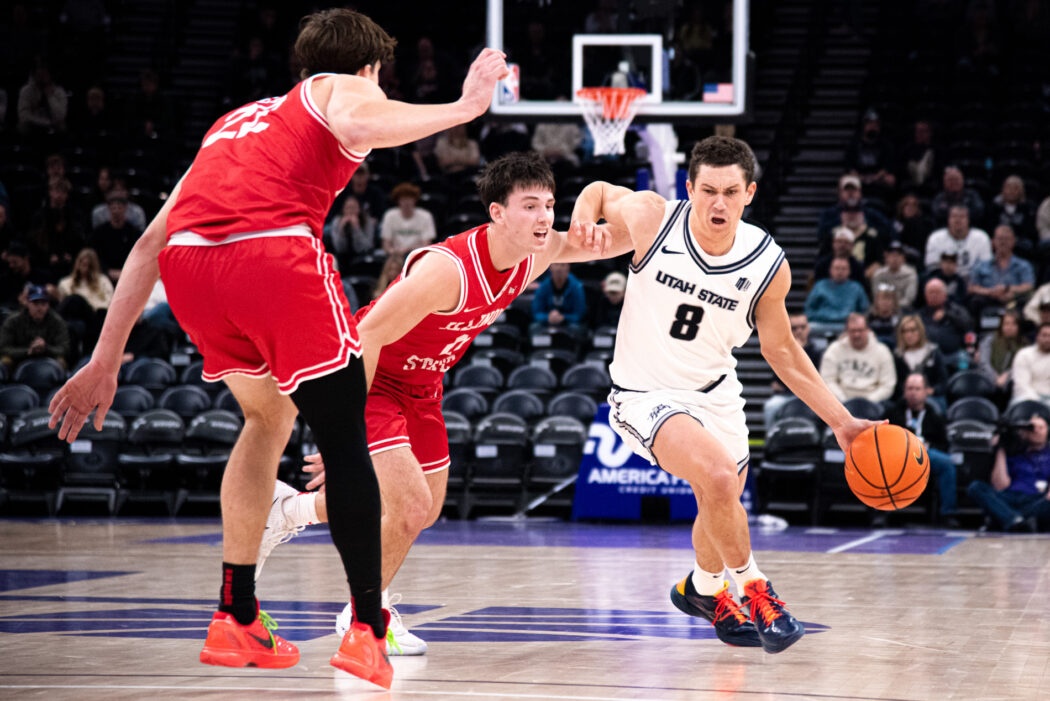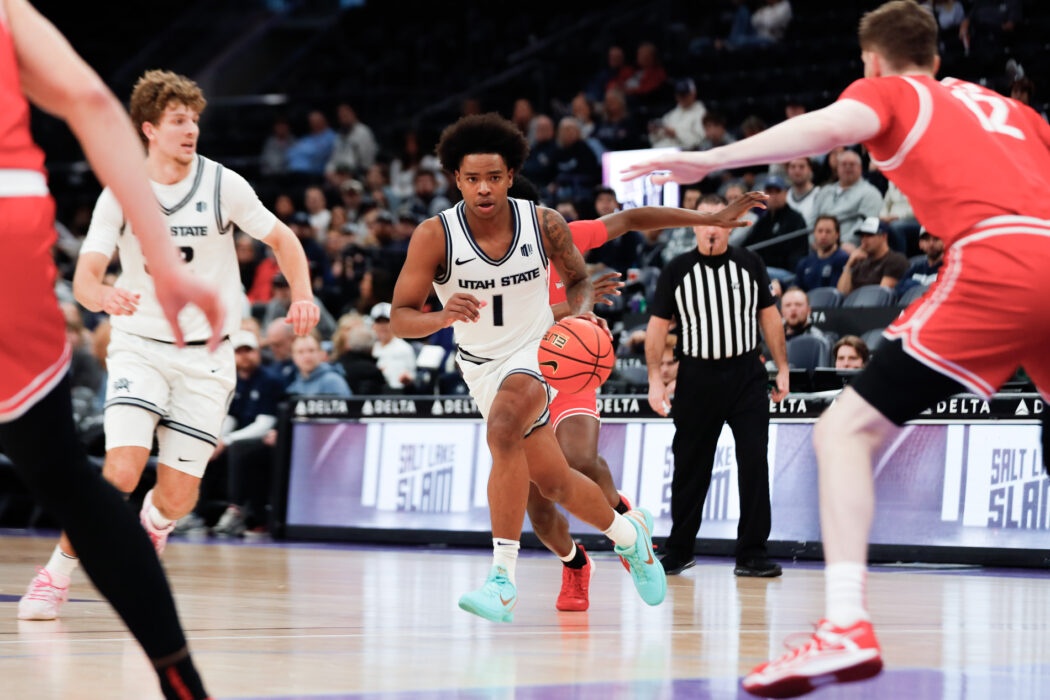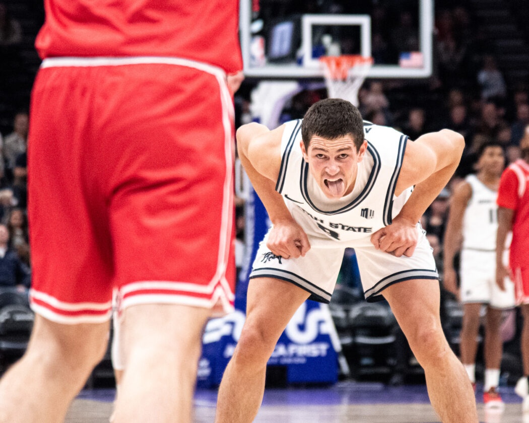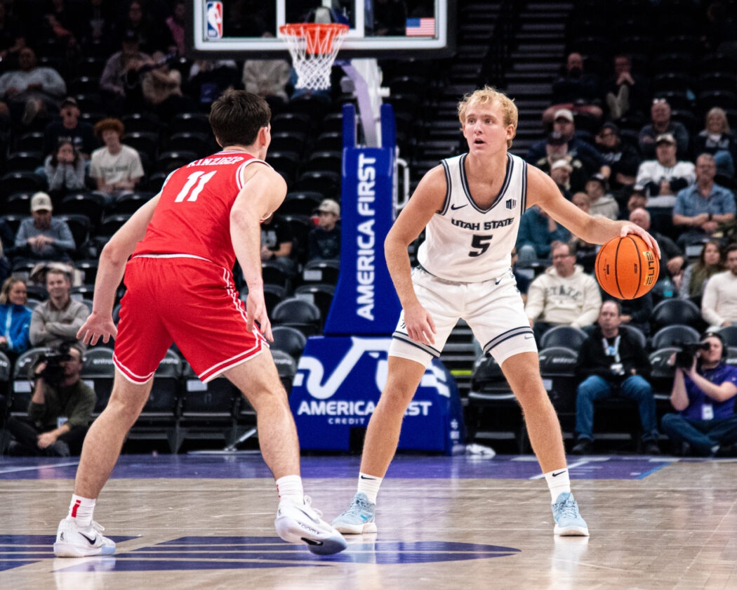 USU Men’s Basketball plays against Illinois State at the Delta Center in Salt Lake City. The Aggies come out on top 83-78 by the end of the 4th quarter.
