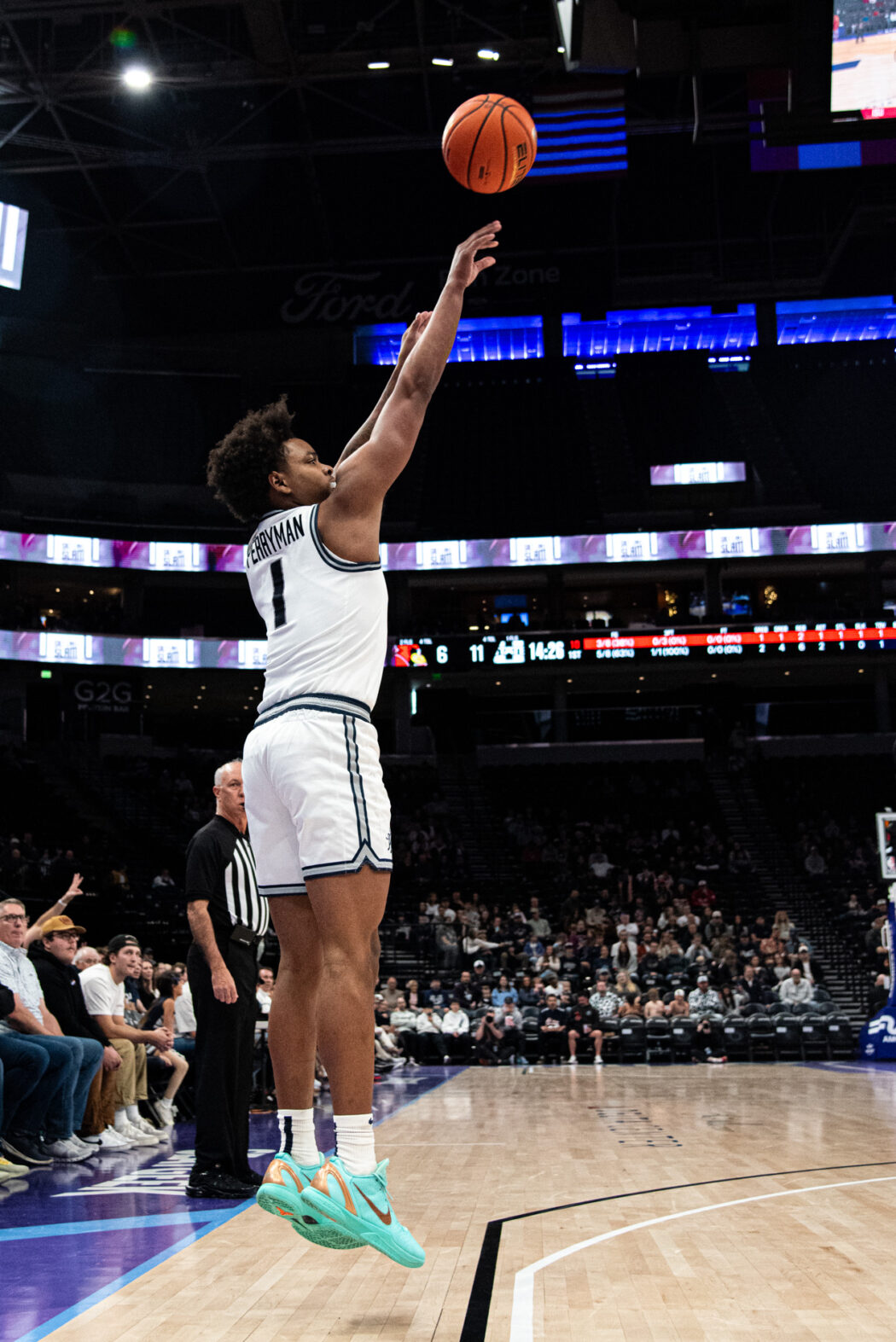 Elijah Perryman, 1, takes 3-point shot playing against Illinois State at The Delta Center on Dec. 13.