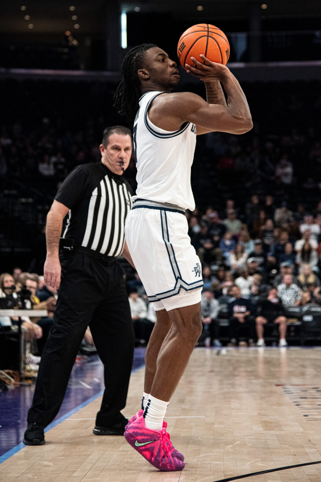 MJ Collins Jr, 2, takes a 3-point shot playing against Illinois State at The Delta Center on Dec. 13.