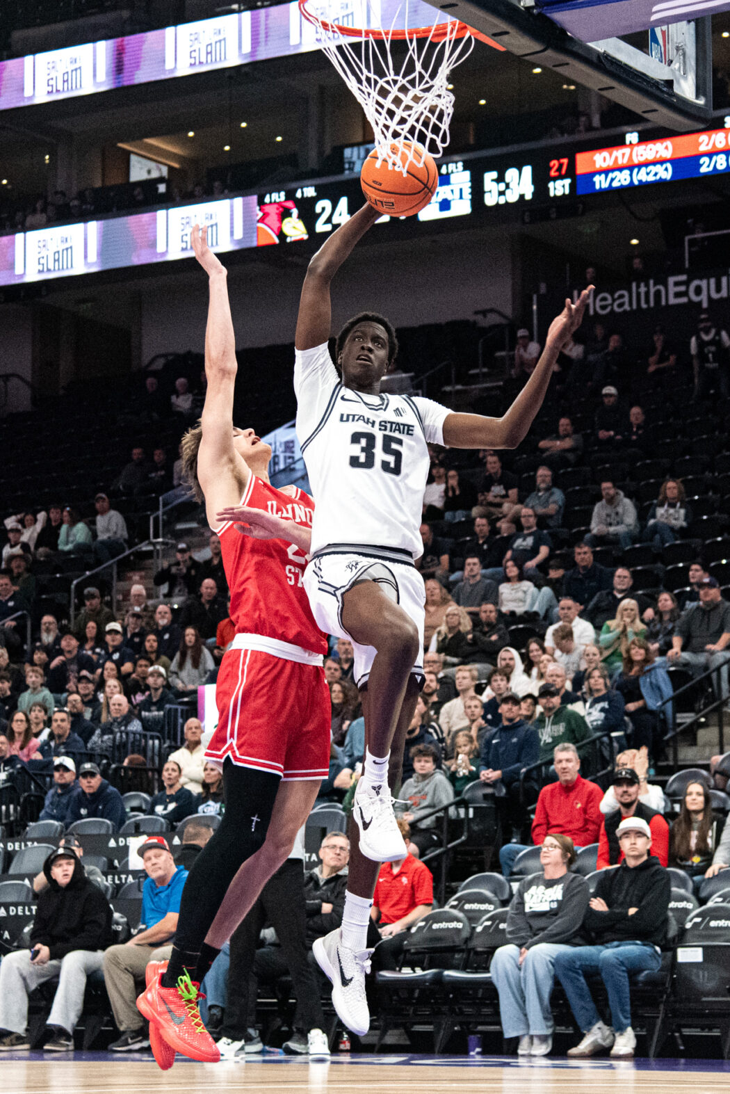 Adlan Elamin, 35, dunks the ball playing against Illinois State at The Delta Center on Dec. 13.
