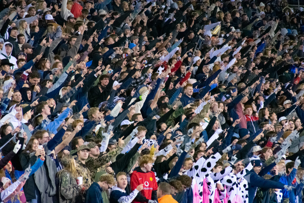The student section cheers on the Aggies during the football game against Nevada at Maverik Stadium on Nov. 8.