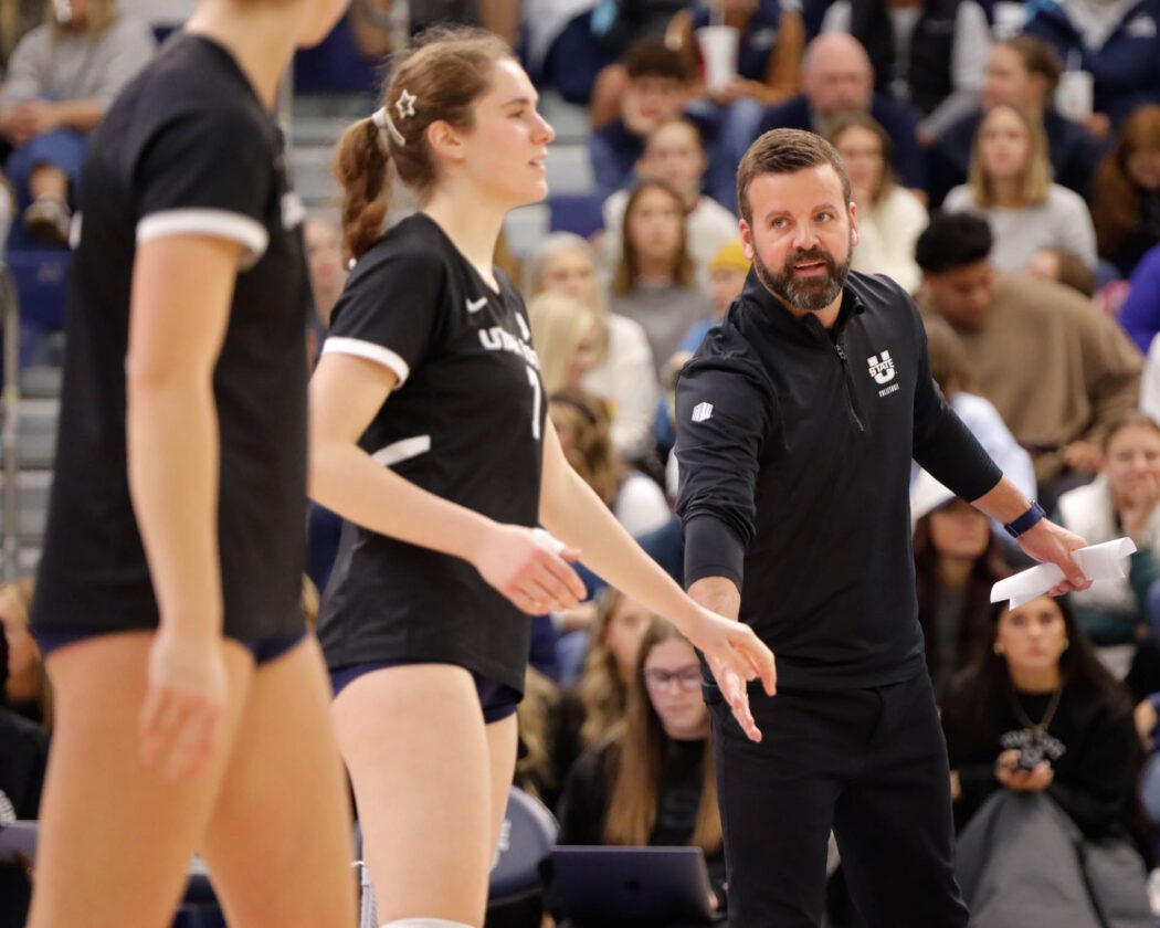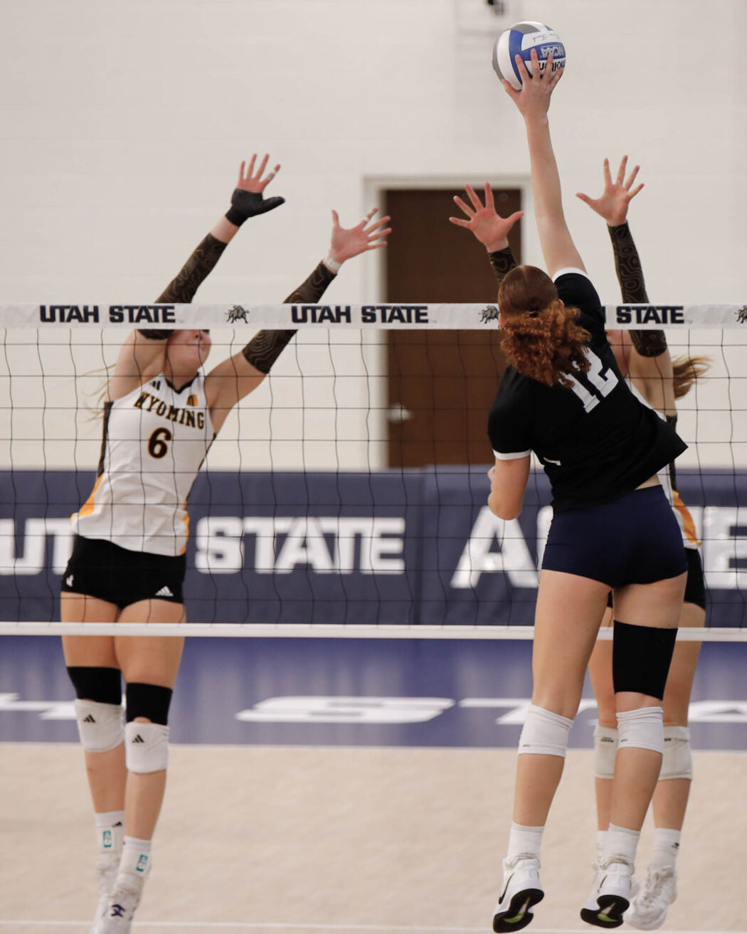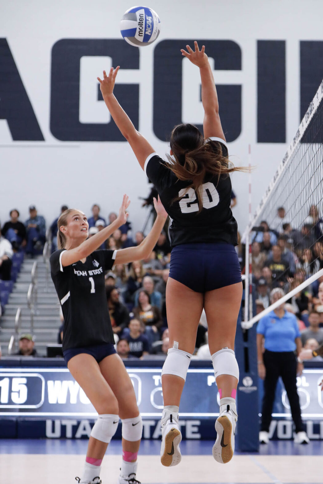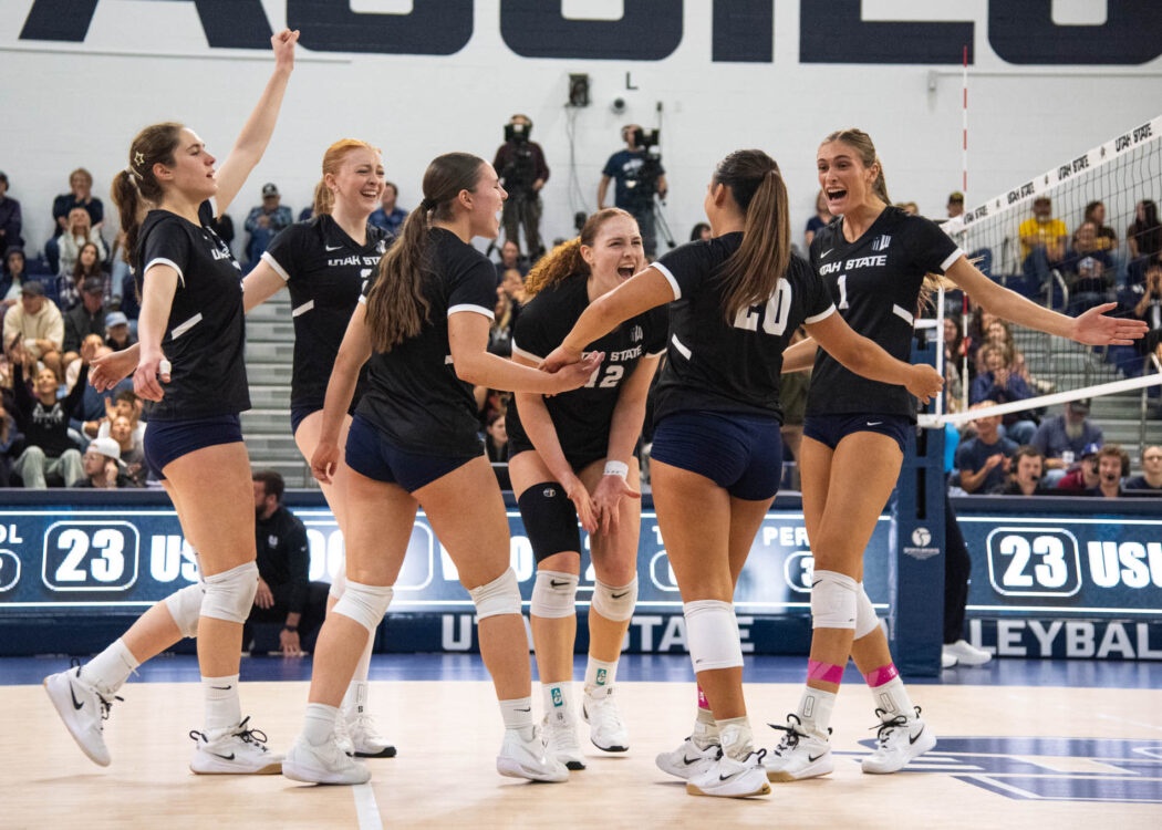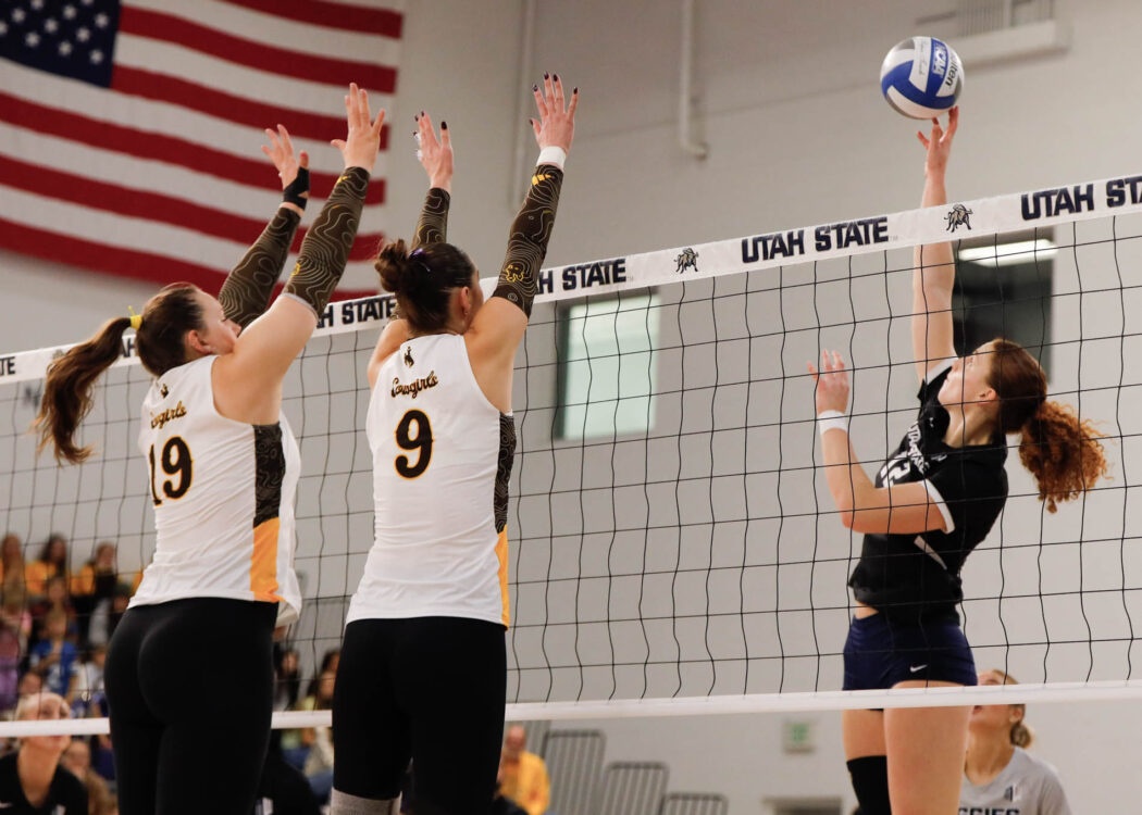USU Women’s Volleyball heads up against Wyoming in the Wayne Estes Center on Nov. 8. Aggies win the first set against the Cowgirls and take that momentum to win the next two as well. Final score 3-0 (25-18, 27-25, 25-14).