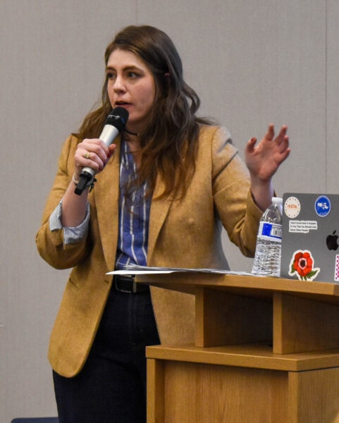 During ICE Q&A at the Logan Library, Nicole Allen talks, Oct. 30. (Alyssa Cook)