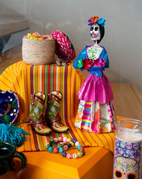 Nearby, a colorful altar stood near the entrance to the main gallery. Coordinator of exhibitions and collections for the museum Chloe Camp oversaw the ofrenda’s design and setup. She said the museum aimed to keep the display authentic while adapting it to fit the indoor gallery setting.