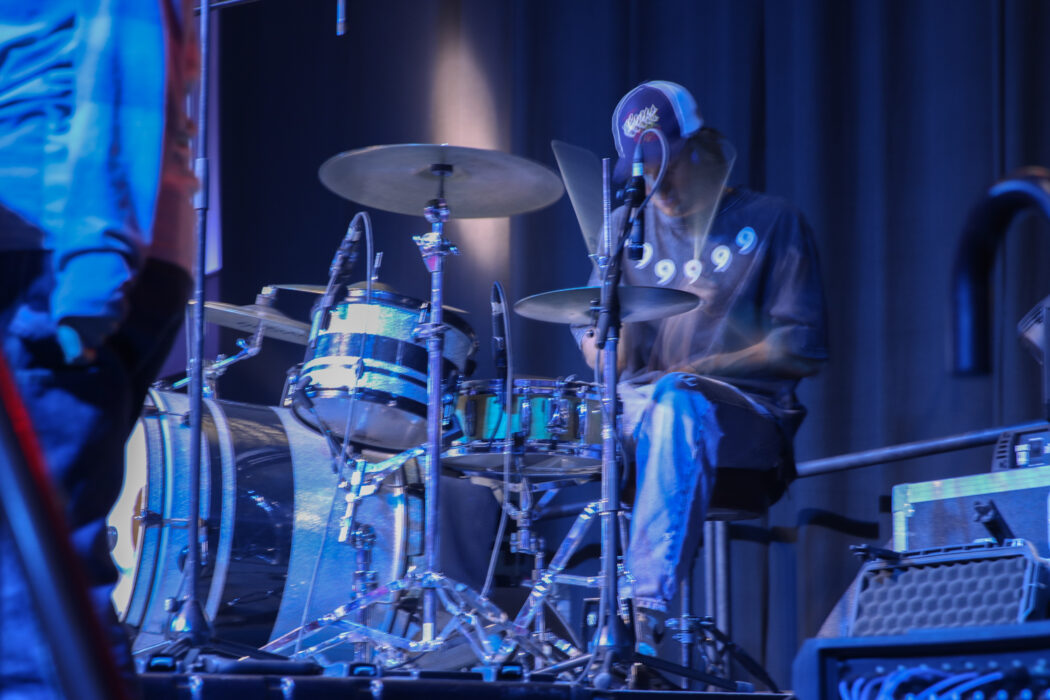 Lovingly Clad drummer, Luke, plays at the End of Year Bash on April 11.