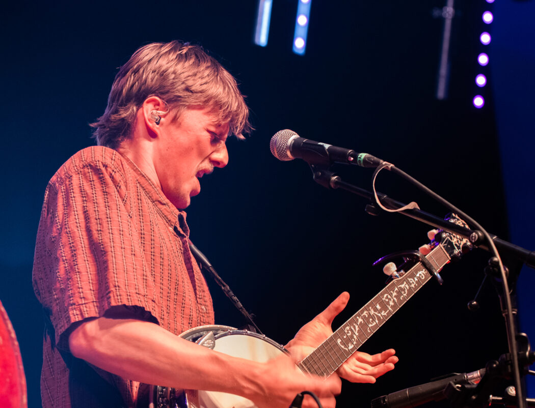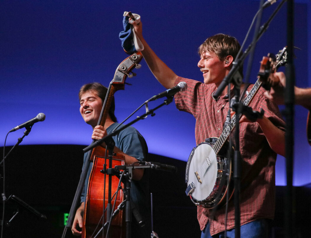 Jonny Celaya, Last Wild Buffalo vocalist and banjoist, sings during the End of Year Bash on April 11.