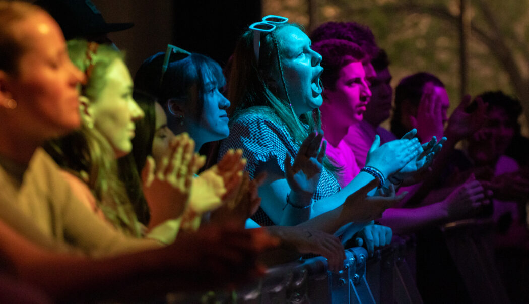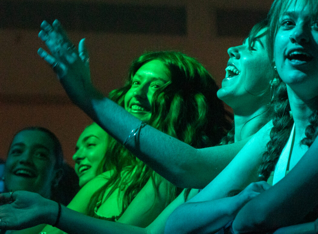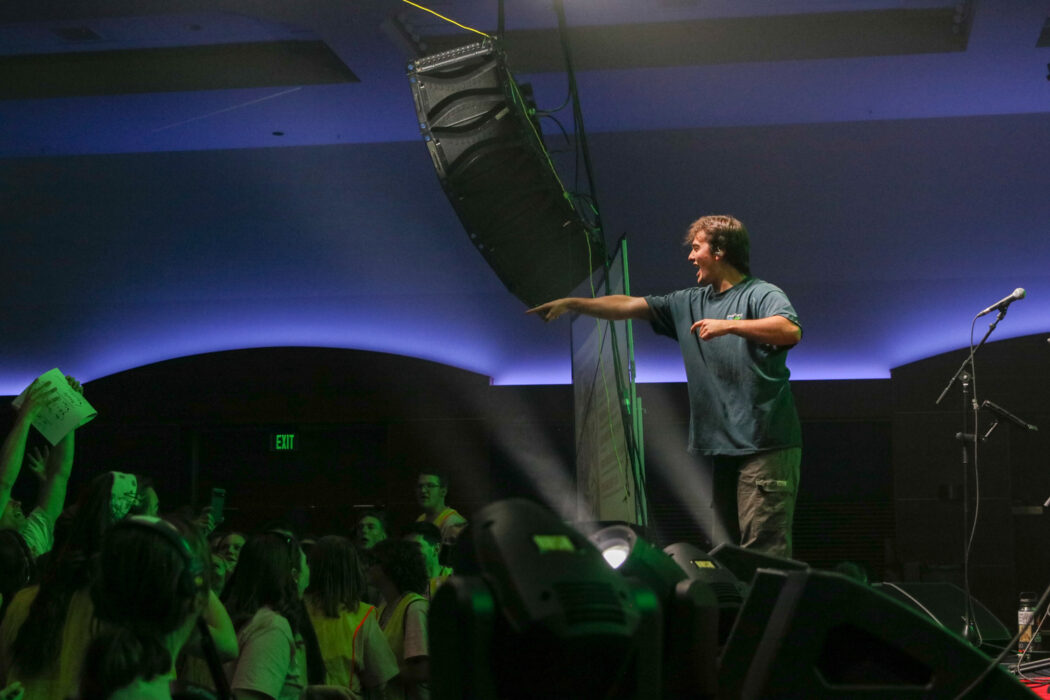 Ethan Thomas Jones, A band called CAYSN guitarist, claps with the crowd at the End of Year Bash on April 11.