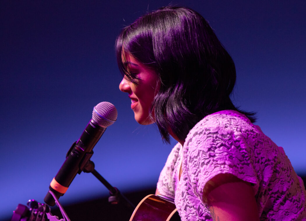 Swetha Bharat sings and plays guitar at her End of Year Bash set located in the TSC ballroom on April 11.