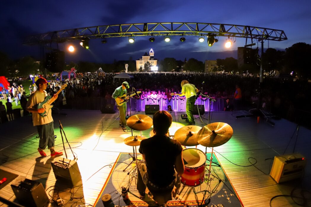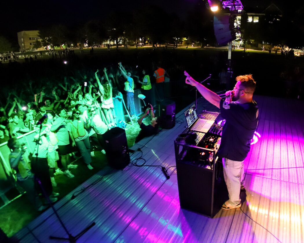 Attendees visit the various attractions at Festival on the Quad, including inflatables, food trucks, Mario Kart, corn hole and spike ball. Local bands Moonspinners, Wednesday and Little Jam perform on stage before DJ Max Murray close the night with a ‘Power Hour Dance’ on the Quad.