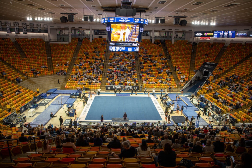 USU gymnases during meet against San Jose State Jan. 23. Photo by: Alyssa Cook