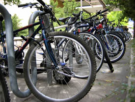 Bikes locked up on campus line a USU sidewalk. (Statesman archive)