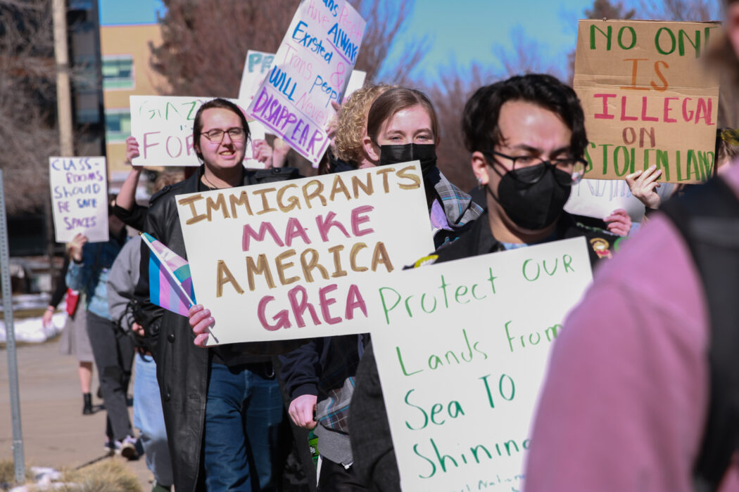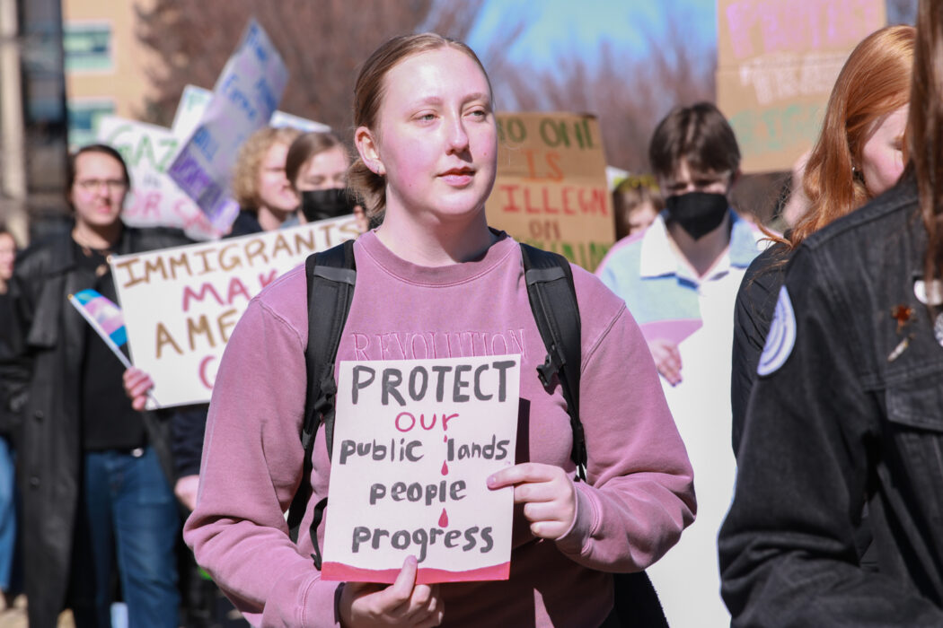 Aggies and others attend Rally for Rights protest on USU campus Friday, February 28.