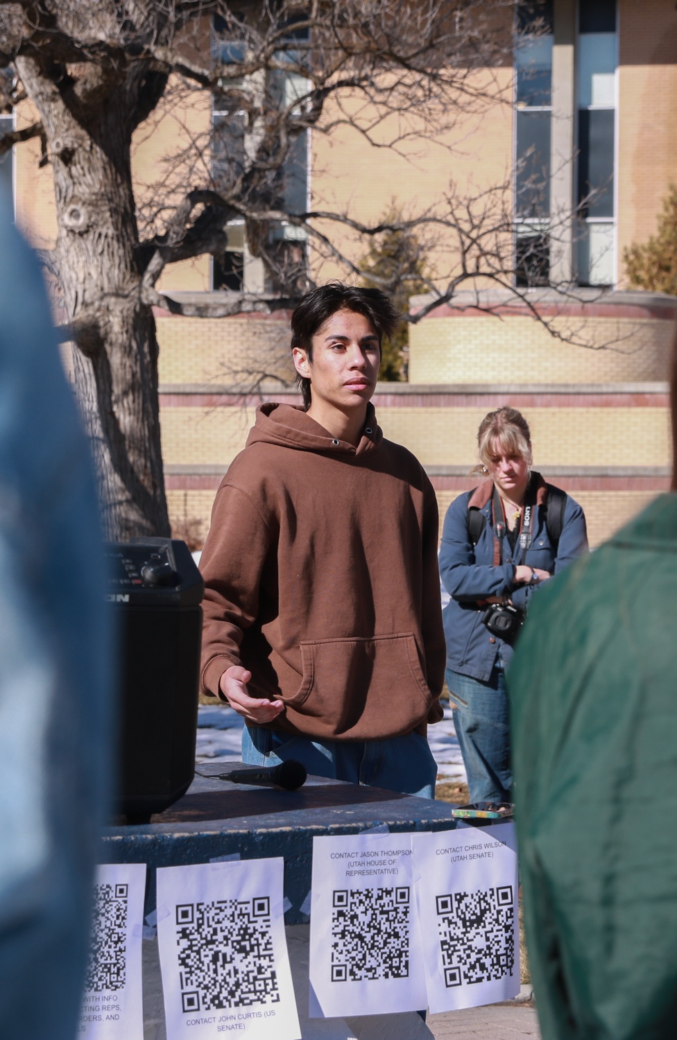Samson Calderon Diltz speaks during the Rally for Rights on Feb. 28.