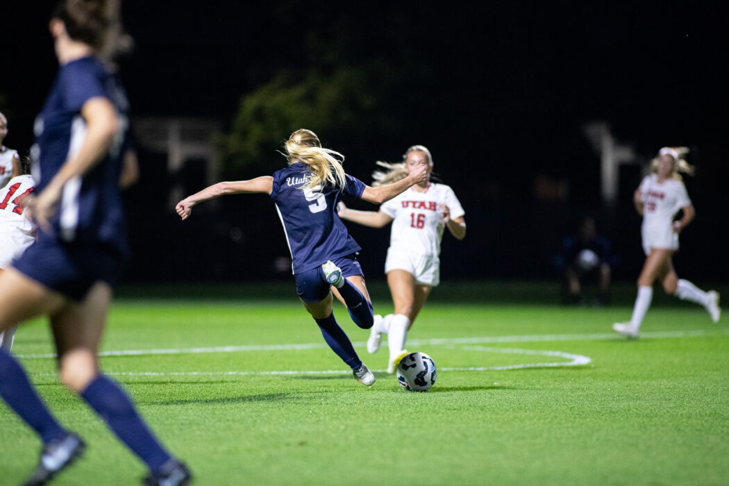 Kaeda Wilson, 28, launches the ball down field past Utah defenders at Chuck & Gloria Bell Field on Aug 28.