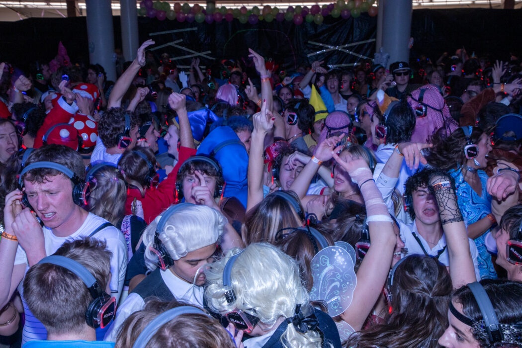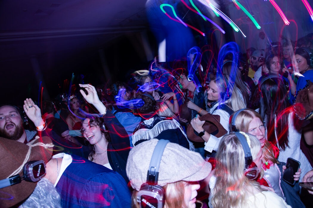 People sing and dance to songs in a silent disco at the Howl in the Taggart Student Center in Logan, Utah on Oct. 31. (Dane Johnson/The Utah Statesman)