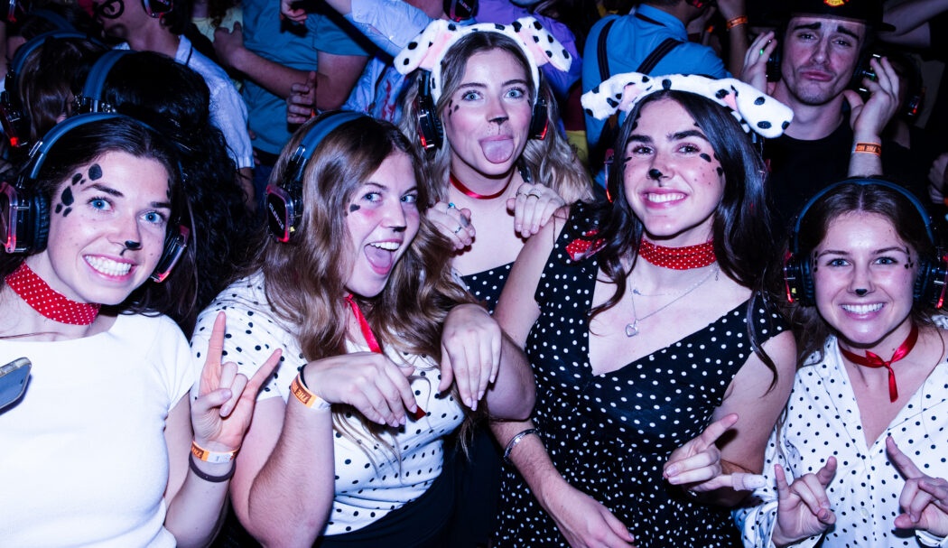 A group of friends dressed as dalmatians pose for a photo at the silent disco in the Taggart Student Center during the Howl in Logan, Utah on Oct. 31. (Dane Johnson/The Utah Statesman)