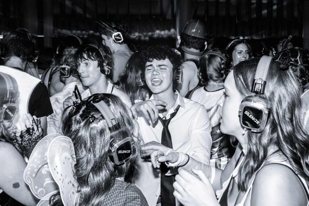A party-goer sings and dances in the middle of the crowd at the silent disco at the Howl in Logan, Utah on Oct. 31. (Dane Johnson/The Utah Statesman)