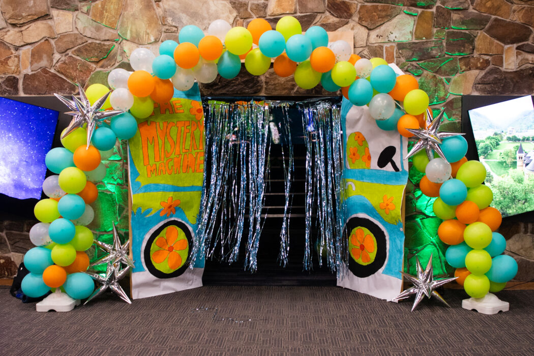 The doorway to the Big Blue Room in the Taggart Student Center is seen decorated like the Mystery Machine from Scooby Doo as part of the Howl on Oct. 31 in Logan, Utah. (Dane Johnson/The Utah Statesman)
