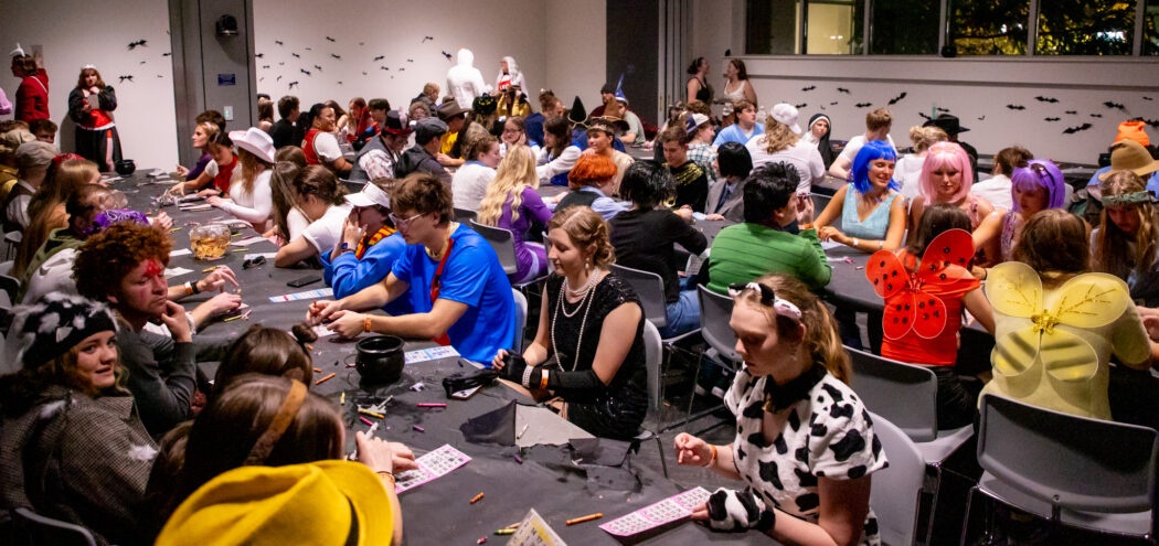 People at the Howl sit at tables to play bingo for prizes in the Taggart Student Center in Logan, Utah on Oct. 31. (Dane Johnson/The Utah Statesman)