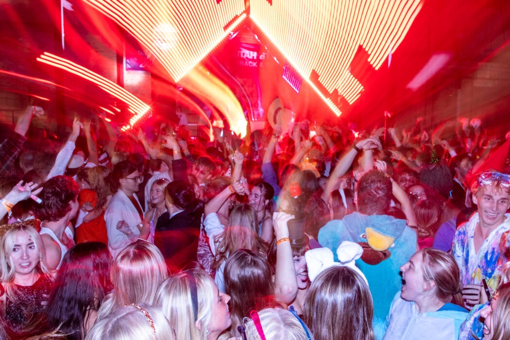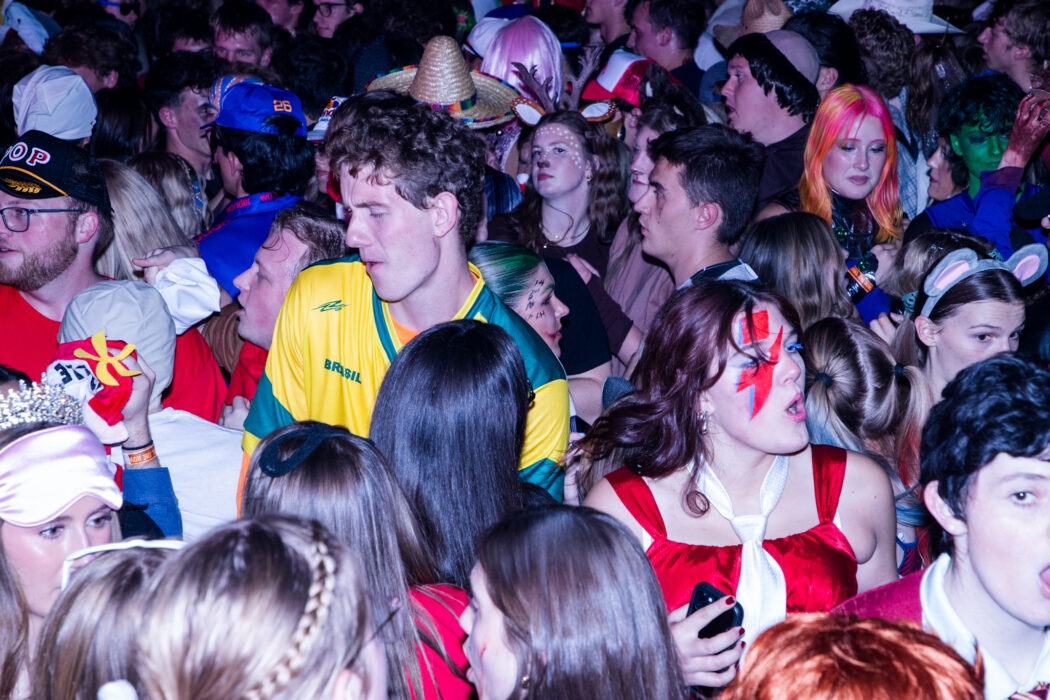 People are seen dancing together in a large crowd at the Howl in the Nelson Fieldhouse on Oct. 31 in Logan, Utah. (Dane Johnson/The Utah Statesman)