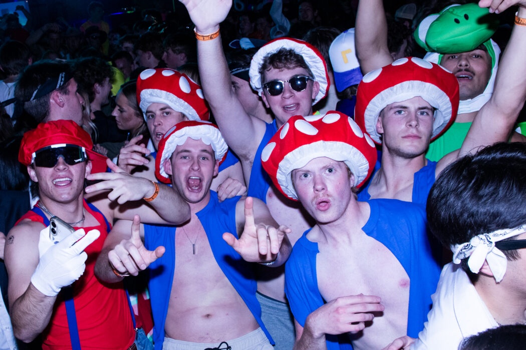 Friends dressed as characters from Super Mario Brothers dance in the Nelson Fieldhouse at the Howl in Logan, Utah on Oct. 31. (Dane Johnson/The Utah Statesman)