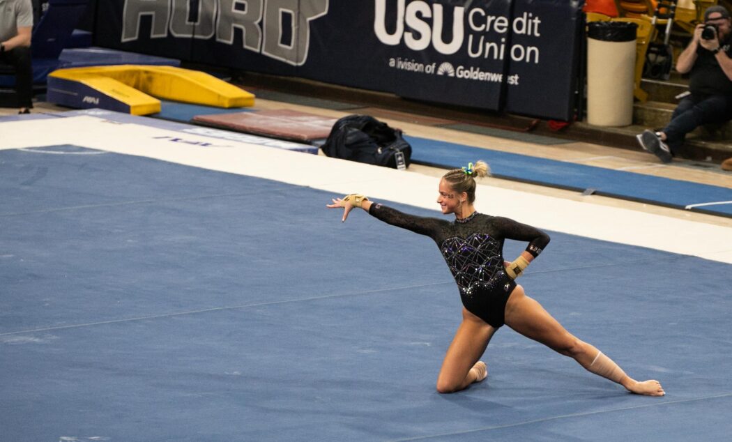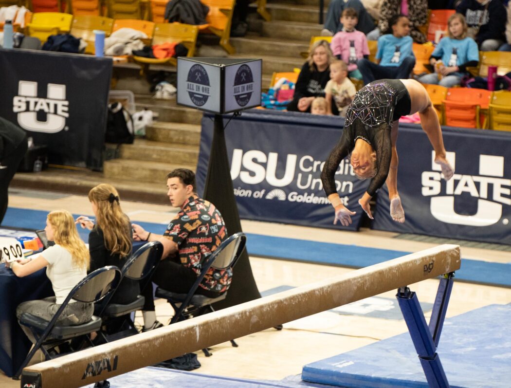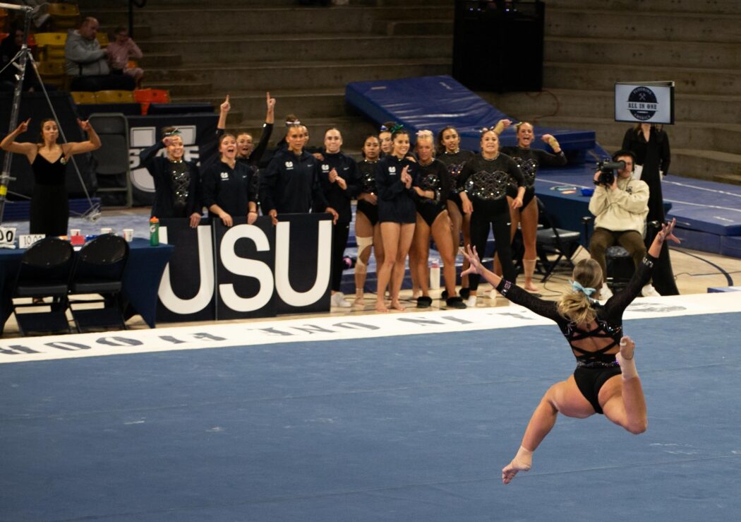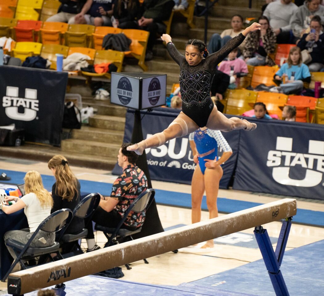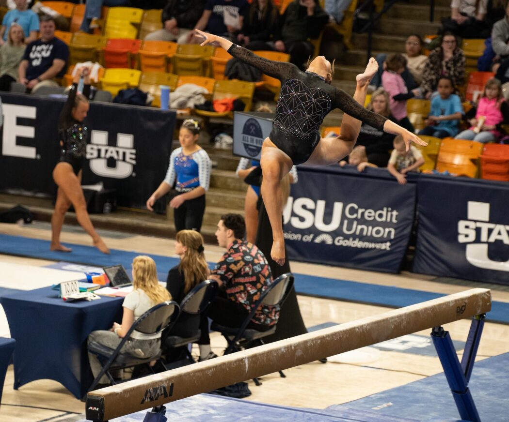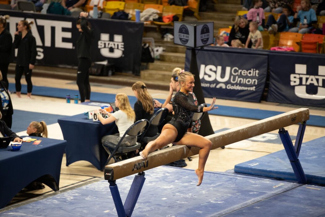 USU gymnastics defeated Boise State 196.300 – 195.900 at home on February 21 at the Spectrum.