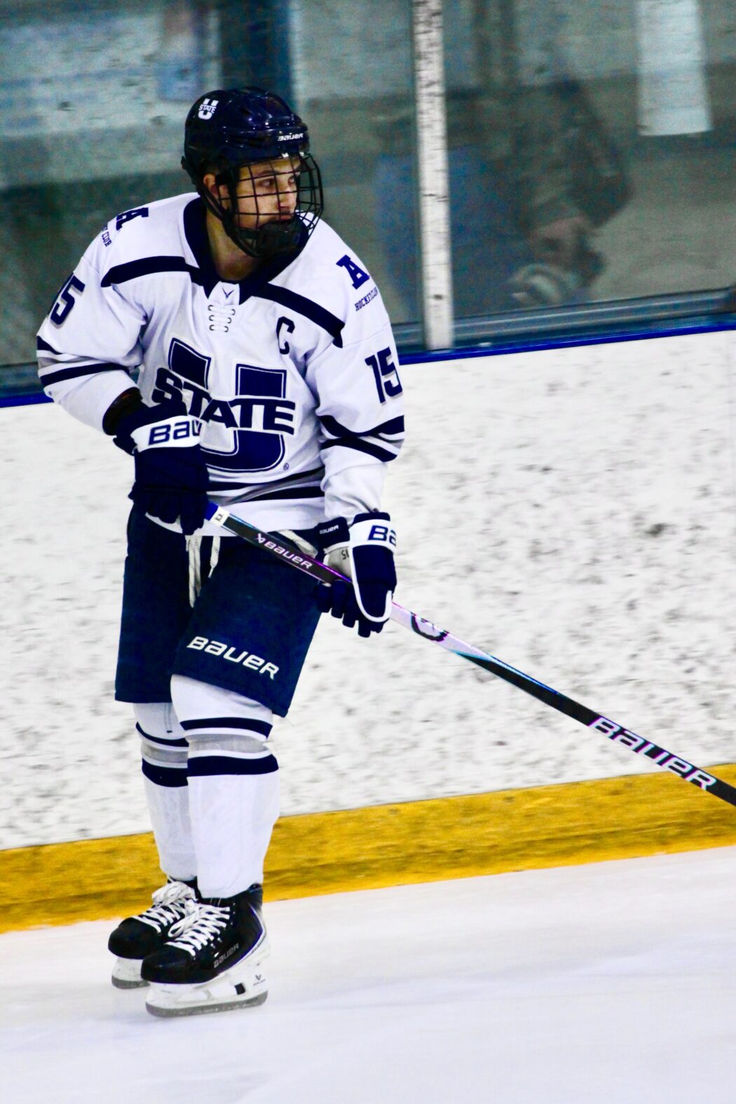 Utah State Hockey Team watches the game against Cal Berkeley on Nov. 20th, 2025. Photo by Hadley Sintay.