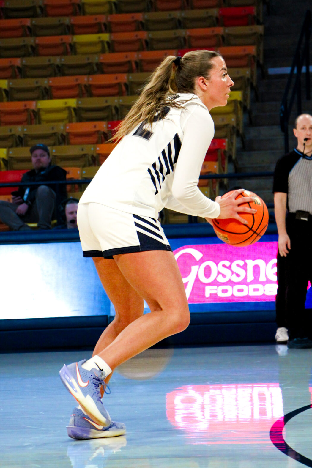 Elise Livingston, 23, prepares to pass the ball during a game vs Nevada on March 3rd. Photo by Hadley Sintay.