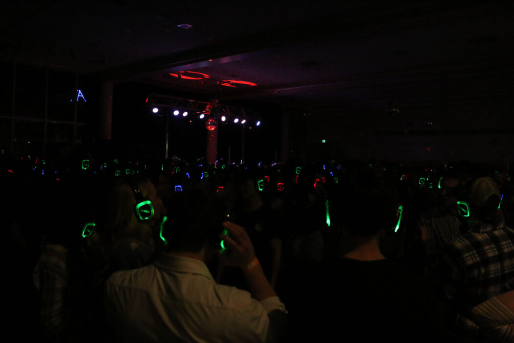 Party goers danced at the silent disco during Casino Night in the TSC on Feb. 7th.