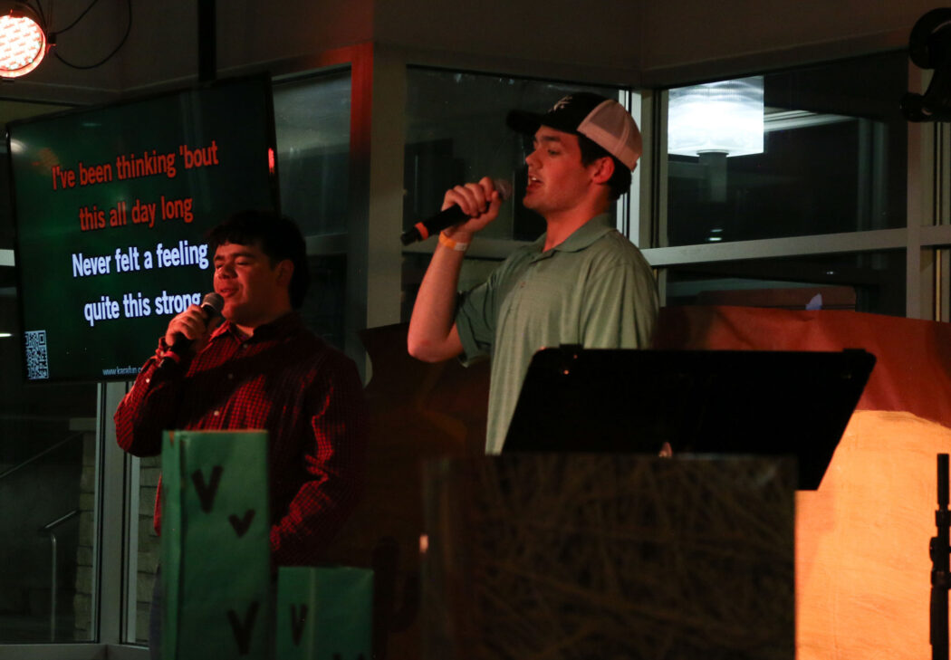 Matthew Reyes and Ben Ausman sang karaoke in the TSC during Casino Night on Feb. 7th.
